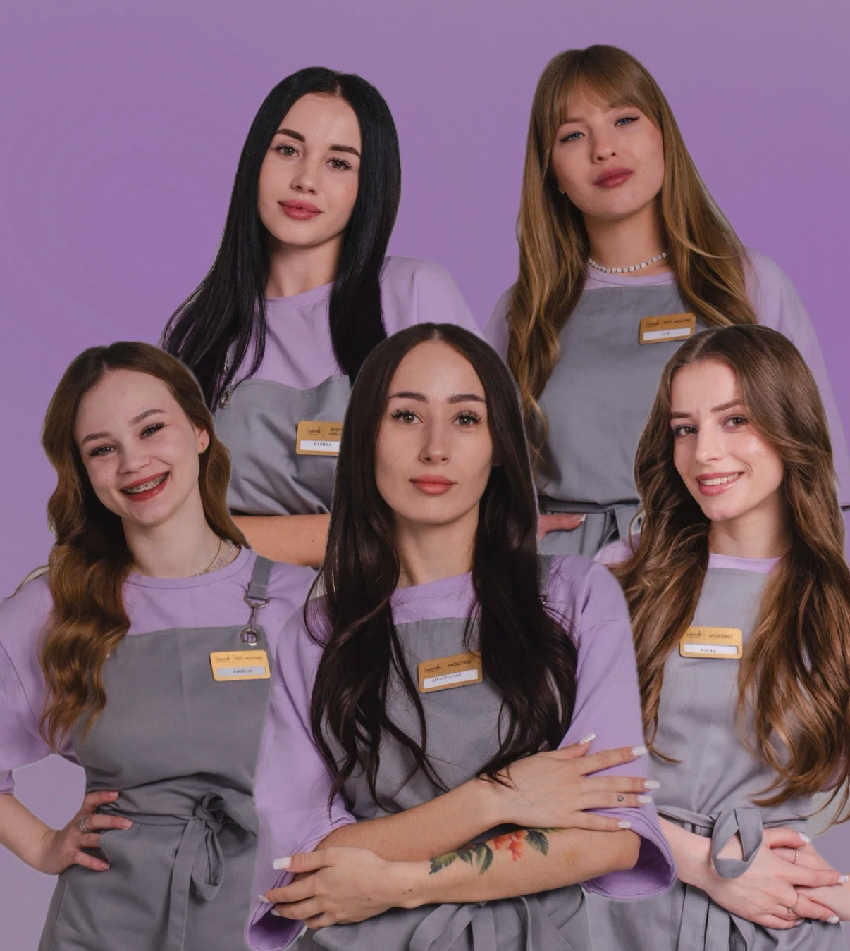 Квалифицированные дипломированные мастера, которые горят своим делом. Штатный технолог салонов обеспечивает контроль качества.